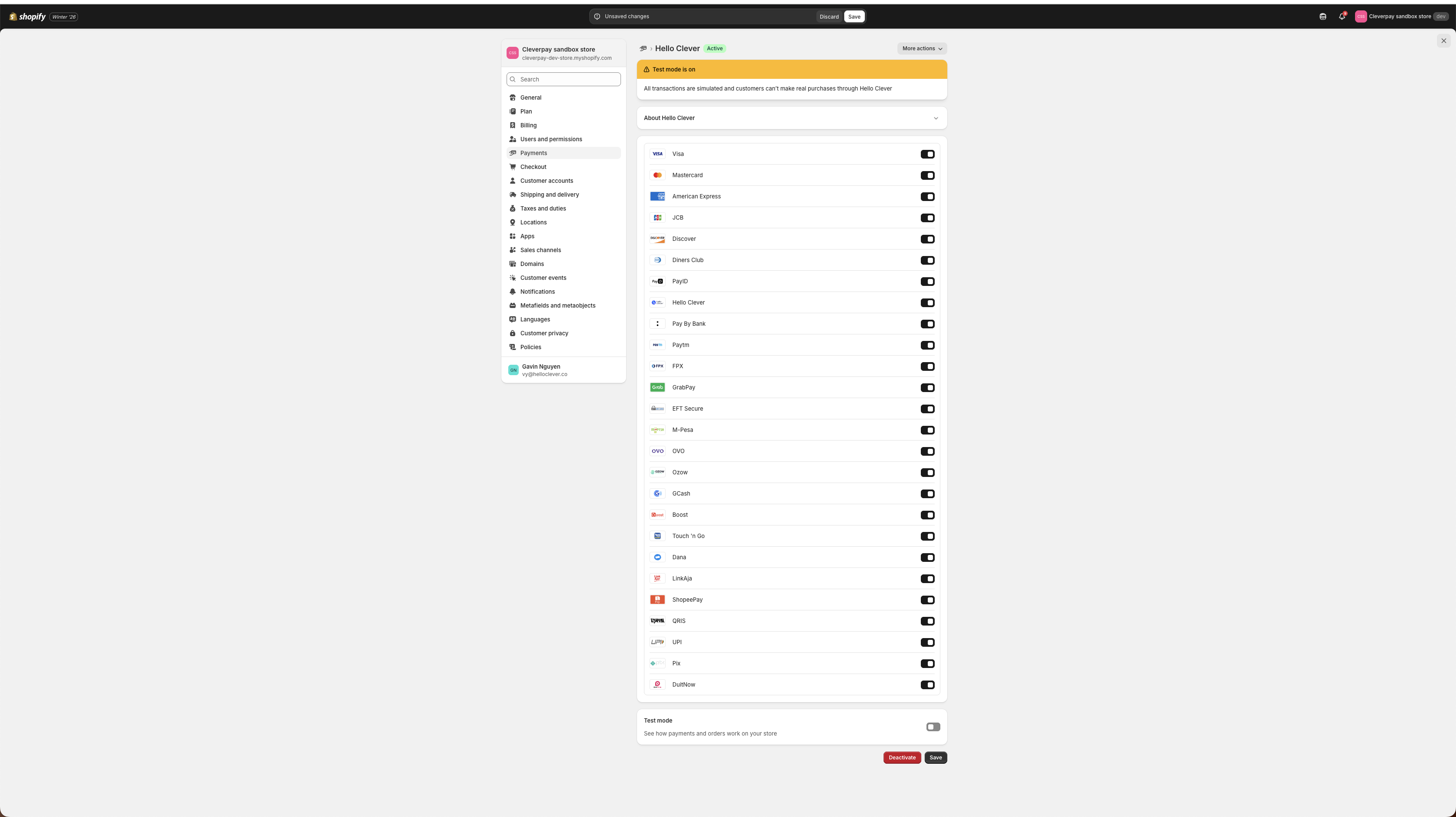 This guide provides a detailed walkthrough for setting up the Hello Clever Payment Gateway on your Shopify store.